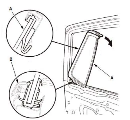 - Remove the glass run channel (A) and the rear lower