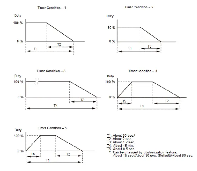 The chart shows lighting duration, along with the dimming function that occurs at the end of the timer period.